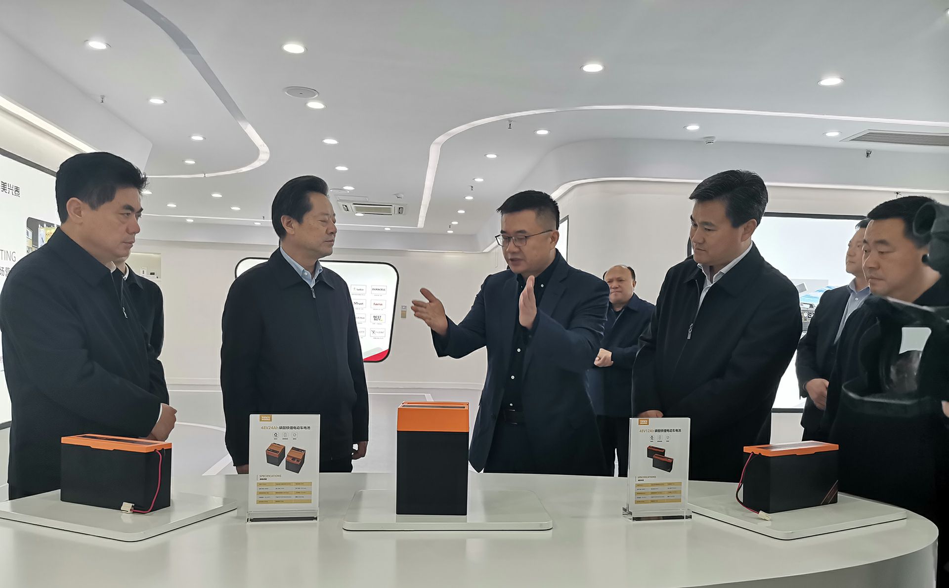 在董事长杨昌军的带领下,州委书记虢正贵一行参观了星空·网站入口网址-星空(中国)产品展示厅以及泰和美新能源电芯自动化生产线,详细了解了泰和美电动车电池产品市场规模及市场前景。